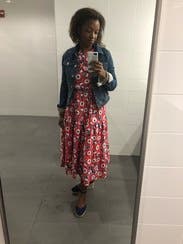 I wore this to work with a jean jacket and platforms. It was comfy, modest and unique. I loved it. I got a ton of compliments and I felt great in it. Good for curvy bottoms and shorter people! The ties are a bit weird for sure ... I tied them in the back in a knot and it look better than in the front. If it was my dress I would have cut them off.