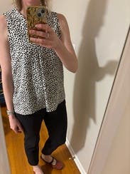 Cute top, little tight at the hips but otherwise great staple with a little interest from the pattern. Longer top which I appreciated.