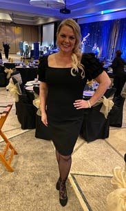 This was my back-up dress as the other one didn't fit. They didn't have my size when I ordered but risked it and went up a size. It was a bit loose on me, which caused the shoulders to slip off. Because of this, I had to wear a bra with clear straps (or a strapless). There was a weird bunching under the bust but don't think it was because it was a little big. I had to keep tugging it down. I did get a lot of compliments on it and it felt so good to get dressed up again!