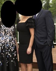 Basic black dress that is easy to wear, appropriate for family/work occasions and comfortable. Sleeves elevate the dress to make it cocktail attire appropriate.