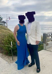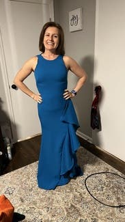 I wore this to a black tie wedding in Cabo. I loved the color and simple elegance of this dress. I was the only girl in this blue color, it really stood out. The front of the dress is unforgiving so I highly recommend to wear spandex if you need them.