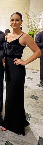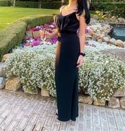 Wore this stunning dress to a black tie wedding in Mexico City and got alllll the compliments. It fits like a glove!! I am 5'5 and wore with 4 inch heels and people still got to see a bit of the shoes. Was more tight in the legs than a dress I'd typically wear to a wedding so while I could dance, was a bit more constricted!