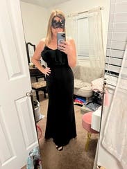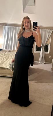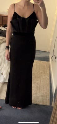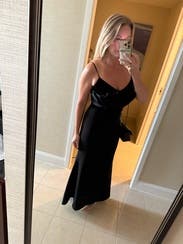 Absolutely perfect for a black tie affair! So classy, incredible quality material, you will feel like Hollywood’s biggest star! The fan front is not overwhelming and gives just enough unique style. There is a small train to the dress so walk accordingly, and the zipper is tricky by yourself. My only complaint is the adjustable straps kept loosening but the dress itself was so sturdy it could’ve been strapless no problem.