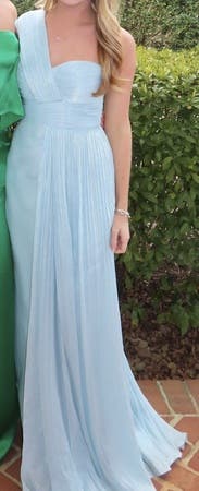 Overall I loved this dress 💙 I got a ton of compliments especially on the color. It was true to size but a little roomy on top for me. I was a little bit concerned about showing too much on my chest all night but not inappropriate. Definitely runs on the longer side which is good if you are tall or wear heels. This gown has gorgeous flow and a lot more comfortable than a strapless.