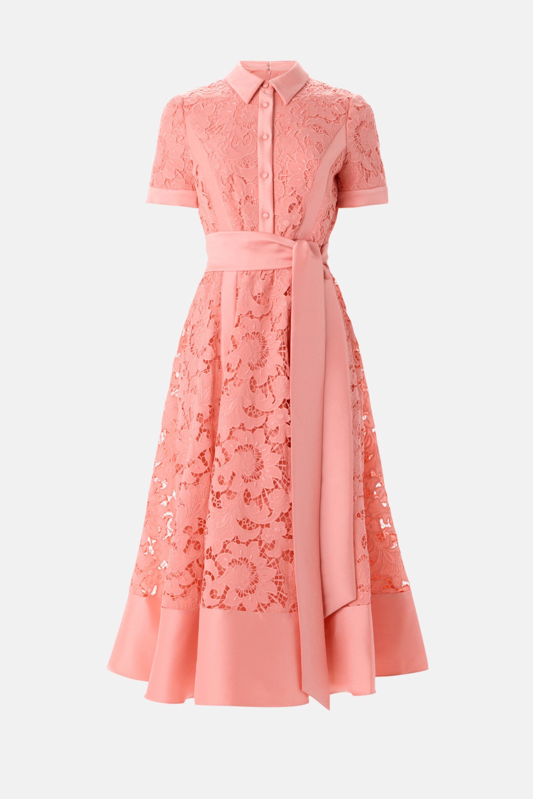 The Lace Shirt Dress by Badgley Mischka blends classic structure with delicate detail for a look that’s equal parts sharp and soft. Style it with heeled sandals and a slim belt to define the waist.