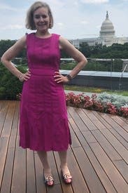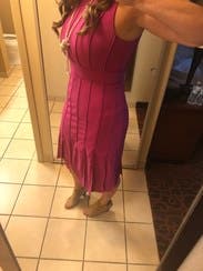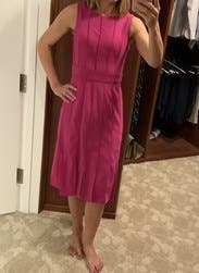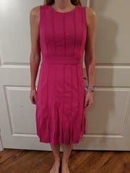 What makes this dress is the hemline.W hen you walk it flares out just right. Not too much but in a flirty way. Bright pink and a sturdy material.