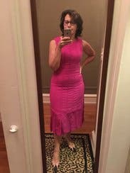 This dress is thick material and holds you in. The color is so pretty and people commented on the fringe hem. Someone commented that the fringe could possible find its way into the toilet--great advice as I was on toilet alert all day.