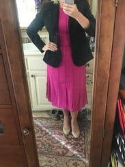 The only slight problem with fit was in the shoulders-they were a little too roomy. Besides that, this dress was perfect! The color was bright and cheerful, which was perfect on a cold winter day, and the hem was "swishy" and fun. I added a sweater, black tights, and boots. This was my rental that received the most compliments. I felt great in this dress!