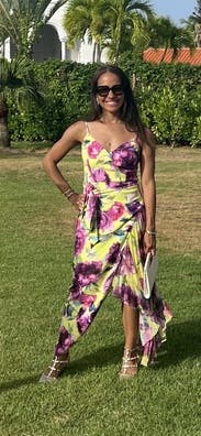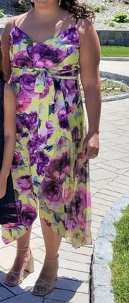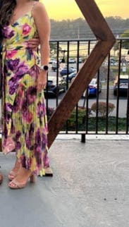Gorgeous dress, super comfortable and flowy, just the right length and the colors are so vibrant, perfect for a spring wedding