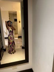 Not my usual style but the fit was so flattering. The flowing pleated panel was a great flourish and made dancing visually fun. Would look better with a tan. Enjoyed wearing it and I felt classy and pretty.