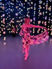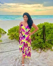 This dress is SO beautiful-- the colors are vibrant and the skirt flows in the breeze. So fun to dance in!