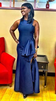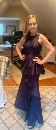 This dress was perfect for a gala I attended. It was a very forgiving fit and hid everything and complimented my figure. I also liked how this dress felt durable and I wasn’t worried about wrinkles.. I would recommend this dress for any formal event.