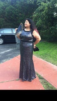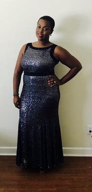Loved loved loved the purple color. This was exactly what I was looking for for a formal gala in Vegas. I'm so glad I went with this choice. I needed something I could wear a regular bra with and this fit the bill. I got so many compliments on this dress and would definitely rent again. No sequin irritation and plenty of room for my large bust.