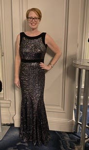 I rented this dress for my friend's formal wedding reception. It was a jazz/swing/New Orleans-themed party and this dress was perfect. I loved this dress and would gladly rent it again. It is incredibly comfortable and surprisingly easy to walk in. I got compliments all night and many slow-mo videos of me twirling in this sparkly dress were taken. I highly recommend this dress!