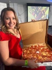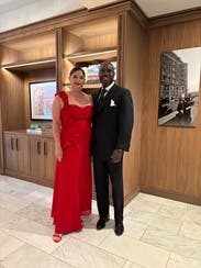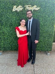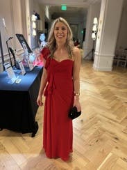 I got so many compliments on this dress! Wearing size 2. Nice not to hem or trip on the length! Could have also gone with black or red heels but I went with gold.