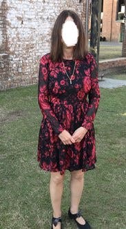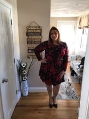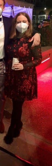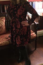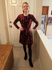 I rented this dress for Christmas Mass and was so happy with my selection. It was such a gorgeous dress that fit perfectly and was a great length for mass (with two toddlers!). I highly recommend renting this one