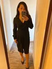 I can't wait to rent this again! Fit was spot on in all the right places, but I was really wow'ed by the construction, quality fabric, and seam details. Tons of compliments. Very classy dress for work, but maybe not dressy enough for cocktail/evening.
