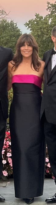 The Two Tone Bow Gown by Badgley Mischka is a glamorous, strapless black gown featuring an eye-catching oversized pink bow detail. The fitted silhouette and side slit add a touch of elegance, perfect for formal occasions. Pair it with statement earrings and sleek heels for a show-stopping look.