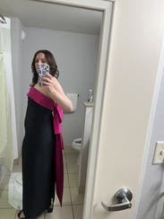 Unfortunately, I didn’t get to wear this but the fit and style was so flattering. The material is thick and structured. The bow is such a stunning color. It was a little long.
