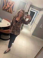 This was the perfect outfit to wear to the Taylor Swift concert!! The blazer fit perfectly and looks great with the matching pants.