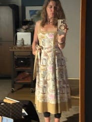 This dress is so cute and fun. It was light weight and felt great on my skin. So many colors in the dress that you can wear whatever color heels and jewelry you feel like.
