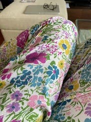 Perfect print for Spring. Thin soft cotton. Comfy. Cute. I sized up one as I have a long torso and it fit but was a little big.