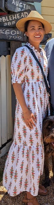 I wore this to a graduation and the school color is red and I wanted to have something with a little bit of red in it so we could coordinate for pictures. I wouldn’t rent it again though. It’s just a pretty average cotton day dress. I like the brand and have rented their dresses before. If you’re looking for a showstopper, this is not it.