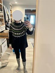 Comfortable, Warm, Cute. Great sweater for a mountain get away. Wore with jeans and boots.