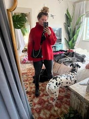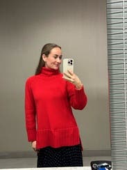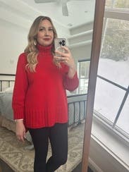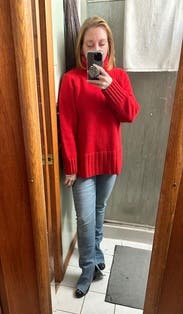 This is a lovely feeling piece with such a rich hue of red. The perfect holiday sweater! May rent again!