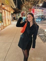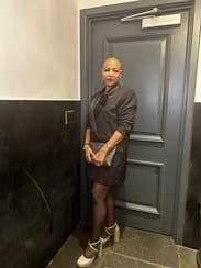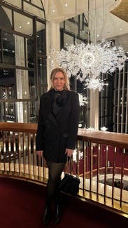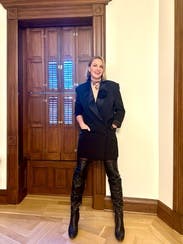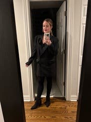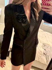 Wore this out for a night in Paris and felt incredibly chic! Lots of compliments too! The Small was perfect, glad I didn't go down a size as that might've been a little constricting around the hips. Paired with tights which was perfect for winter. Originally I didn't love the flower on the lapel when I saw it online but in person it adds to the outfit.