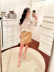 Loved this for a casual work day; Wool is very thick, so not great if you need to layer with a coat, but otherwise warm and super cute!