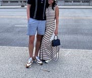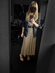 The best dress! perfect for everyday summer wear, this dress has shoulder pads that are invisibly there and horizontal stripes that are somehow flattering. This dress is heavy and warm enough to wear on a plane or inside when the AC is blasting!