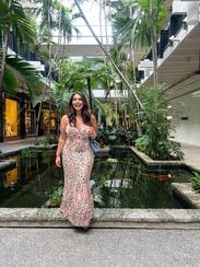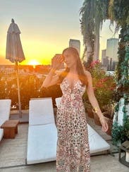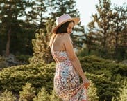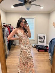 This dress is an absolute stunner. Love the backless piece, love the floral design. Bought it almost immediately & wear it so often. It’s just the perfect amount of fun, floral and flirty!