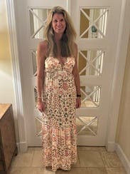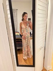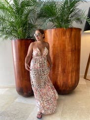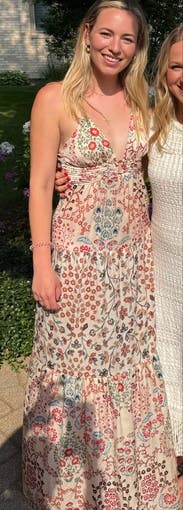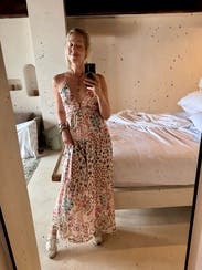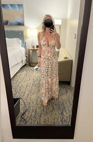 This is my favorite maxi dress I’ve ever worn. I love a tie back dress and this one was perfect minus the fact it was a liiiiiitle long on me. I’m 5’3 and wore flats and had to pick it up to walk but it would have been fine with heels! Received so many compliments! Would love to buy!