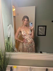 I got engaged in this dress so it holds a special place in my heart haha - I was absolutely obsessed with it! The top is actually different from the model but I actually liked it better. I'm a pretty solid medium and rented the small and it fit perfectly. 10/10 recommend