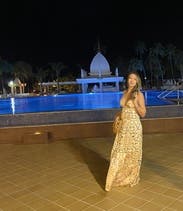 I really liked this dress. I wore this on vacation and it was the perfect “summer” vibe. The only thing I would say about this dress is that it wasn’t too fitted around the bust area and kind of loose, so to improvise instead of tying the dress on the back I looped it around and tied in the front to make the bust area more fitted. If you have a small bust I would not recommend this dress I wore an XS, I have a D cup and still had to improvise.