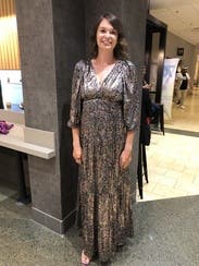 This dress is gorgeous! The pictures do not do it justice! It has silver and gold, so it made jewelry and shoes easy!! The open back adds elegance, but was very comfortable. It was very long. I did have to wear a slip under it. Beautiful!!