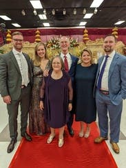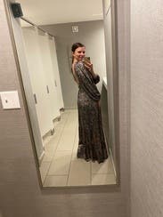 Not the most flattering of the dresses I rented, but the theme of the gala was sparkle, and this was the only one that sparkled! It was super comfortable like a nightgown and while it didn't photograph all that well, it looked sort of sexier in person because of the back. But also because the back is open, I had to wear one of those bras that sticks to your skin on the sides because I'm a double D. The dress does help support you a little, but for the most part it's loose and comfy...
