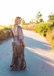 This dress may go down as my favorite! I loved the metallic detailing and the open back. You definitely will need to wear stick ins though.