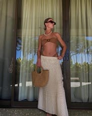 I initially kept hold of this skirt for about 6 months the first time I received it. I made the mistake of sending it back and immediately wanted it back again! It’s such a beautiful staple piece for my wardrobe here in South Florida. Looks great with simple crop tees and tube tops. The crochet fabric is pretty heavy but the holes throughout make it breathable to still wear in the heat. I honestly love this skirt so much! The fit is really flattering and I always receive compliments when I wear it. :)