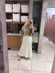Loved this skirt, but make sure you’re wearing nude undies because it is a little see through up top!! Very comfortable material