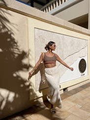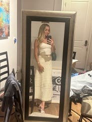 This set is so cute! I wore it to welcome drinks for a wedding in Cabo and received so many compliments. I wear size 28 jeans and have larger hips for reference. Would definitely rent again!