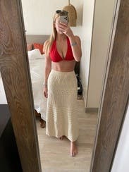 This skirt was incredible! I was worried with the thicker material it would be hot, but it was perfect! There are so many ways to style this I ended up keeping it for two vacations. Couldn’t give a higher rating. Probably too 5 things I’ve rented! The fit was perfect and it was so flattering!