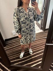 Comfortable and flows dress with unique sleeves. Loved the color and print. Light enough for a hot Texas summer day.