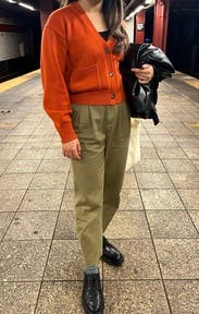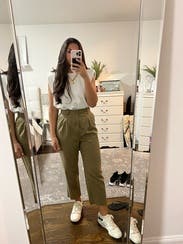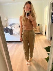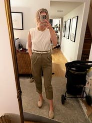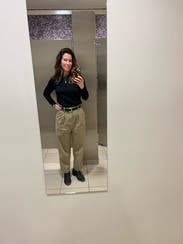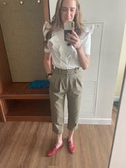 I was nervous about the fit of these pants because of the front pleats. I was a little worried it would be unflattering, but I was pleased these were really cute and easy to style. I was sad to send them back. Will definitely revisit these in the future