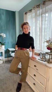 I pair these pants with a tank top and heels for my birthday dinner. They’re comfortable but more casual than slacks so perfect for date night or errands.