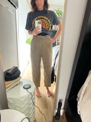 These pants are the best and most well-fitting pants I've found on RTR so far. I'm 5 foot 4 and the high waist hits right at my natural waist line, and the hem hits right at my ankle. The silhouette is incredibly flattering and the fabric is lightweight, making this ideal for spring/summer wear. The style of these pants also makes them extremely versatile - pair it with heels for the office or a night out, pair it with sneakers or sandals for casual weekend wear!