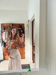 Compliments from multiple ladies in the set. My husband did not love the puffy shoulders because they make me “look a little big”. Definitely a bit cropped, elastic in the back waist helps with adjustment.