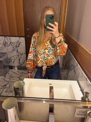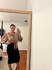 I wore this top 10 times while I had it. I had to get the medium because the small wasn’t available and the sleeves were a little long and billowy, so I’d say get your true size!