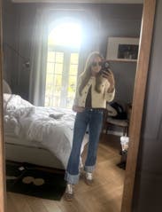 This is a well made jacket and it’s in great shape - no pilling, fraying, etc. Unfortunately it was too big / boxy on my petite, busty frame - especially from the side, it hung diagonally off my chest like a tent. That said I did like the cropped length of the body, and the sleeves weren’t TOO long. I think this would work well on someone petite to average height that has a smaller chest. I am usually a size medium or 6/8 but sometimes size up in jackets and/or designer brands - I rented a large in this because the Gaspard cardigan from the same brand is a hair tight in the arms in a medium and it’s a knit so it has some give. It’s possible sizing down to a medium would help with the sleeves/shoulders, but I think I’d have the same problem with the fit on the chest/torso because the material is fairly structured. I am 5’2” and my measurements are below: Bust: 39” (30i bra) Waist: 29” Hips: 41”